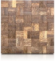 Reclaimed palm timber (sustainably harvested), clear lacquer, Square pattern.